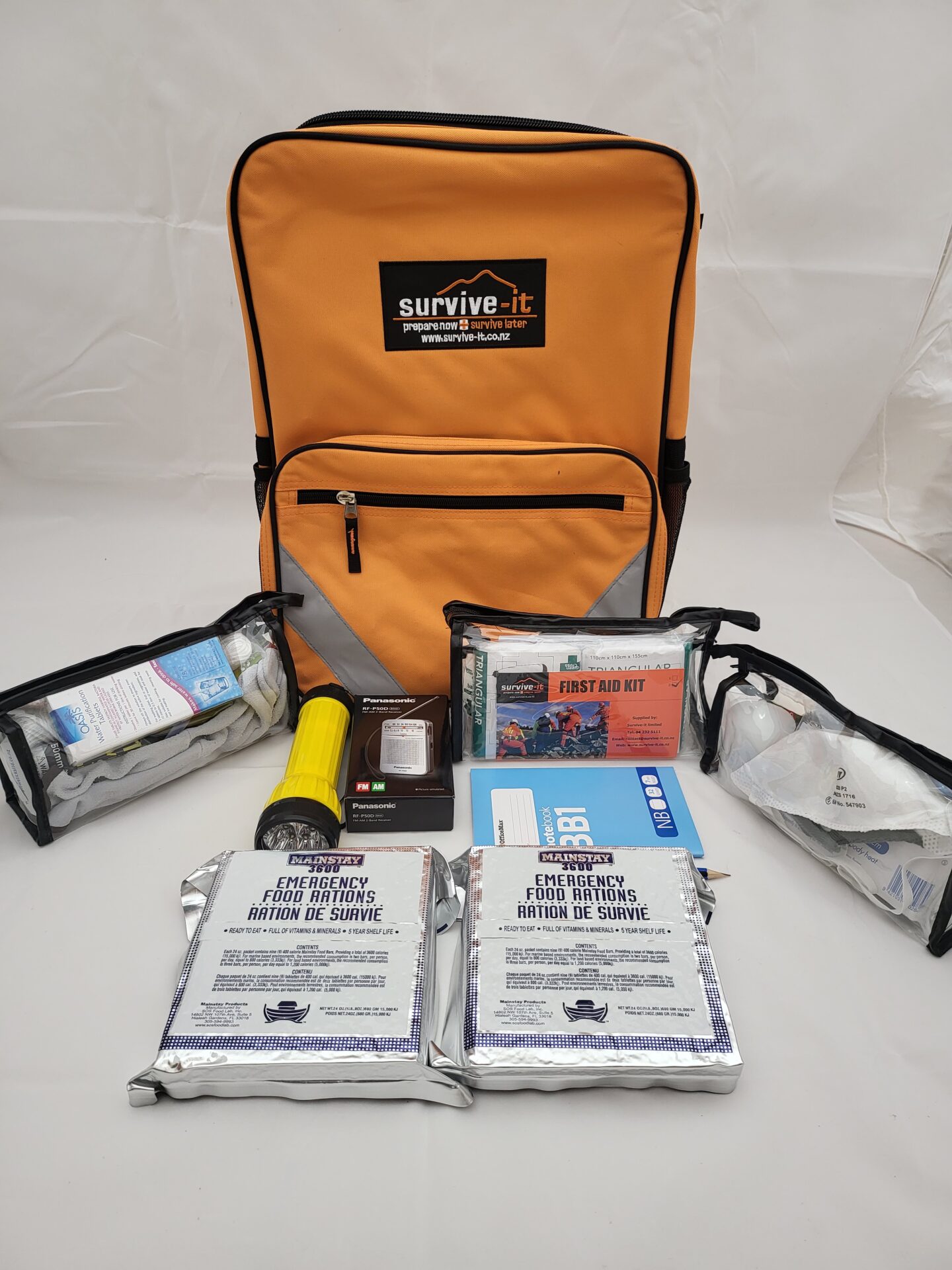 This 3 day survival kit for 2 people is of high quality and is designed by survival experts to provide the essentials you will need in an emergency situation.It comes packed with lots of equipment and is designed to meet the official requirements of enabling each person to be self sufficient for 3 days in the event of a major emergency such as a destructive earthquake.This kit provides food; water treatment, survival aids, a comprehensive first aid kit, a radio and a torch and many more essential items.We highly recommend this kit as it provides the essentials you will need. All you have to do is make sure you store plenty of water, obviously, due to the weight of water, you will not be able to carry enough with you in a pack as you will need a minimum of 3 litres per person per day. Make sure you store extra water, you can order more water containers on this websiteOur 3 day kits are guaranteed (see terms and conditions) and we are certain you will be very happy with the thoughtful design that has gone into these great kits for your safety and survival.Kit contents