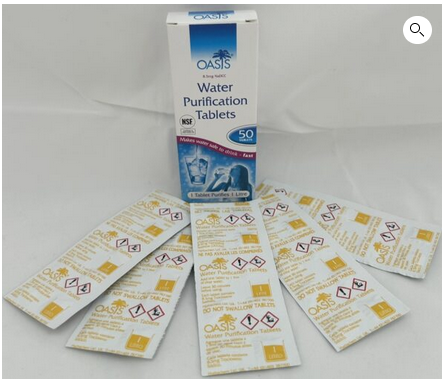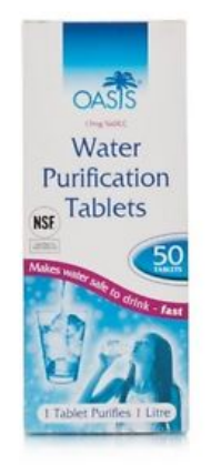 Aquatabs come in boxes of 50 tablets; each tablet will treat one litre of water. During emergency situations, such as severe damage by earthquakes, water supplies often become contaminated. NEVER drink untreated water unless you are certain it is safe. Mains water can become contaminated during such events. Use these water purification tablets and follow the instructions carefully.