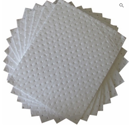 Polypropylene pads specially treated to repel water but absorb hydrocarbons.
