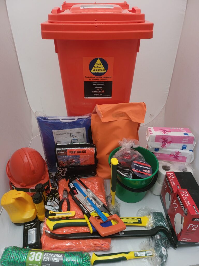 This Civil Defence Wheelie kit is ideal for offices, schools, or any situation requiring essential emergency equipment.