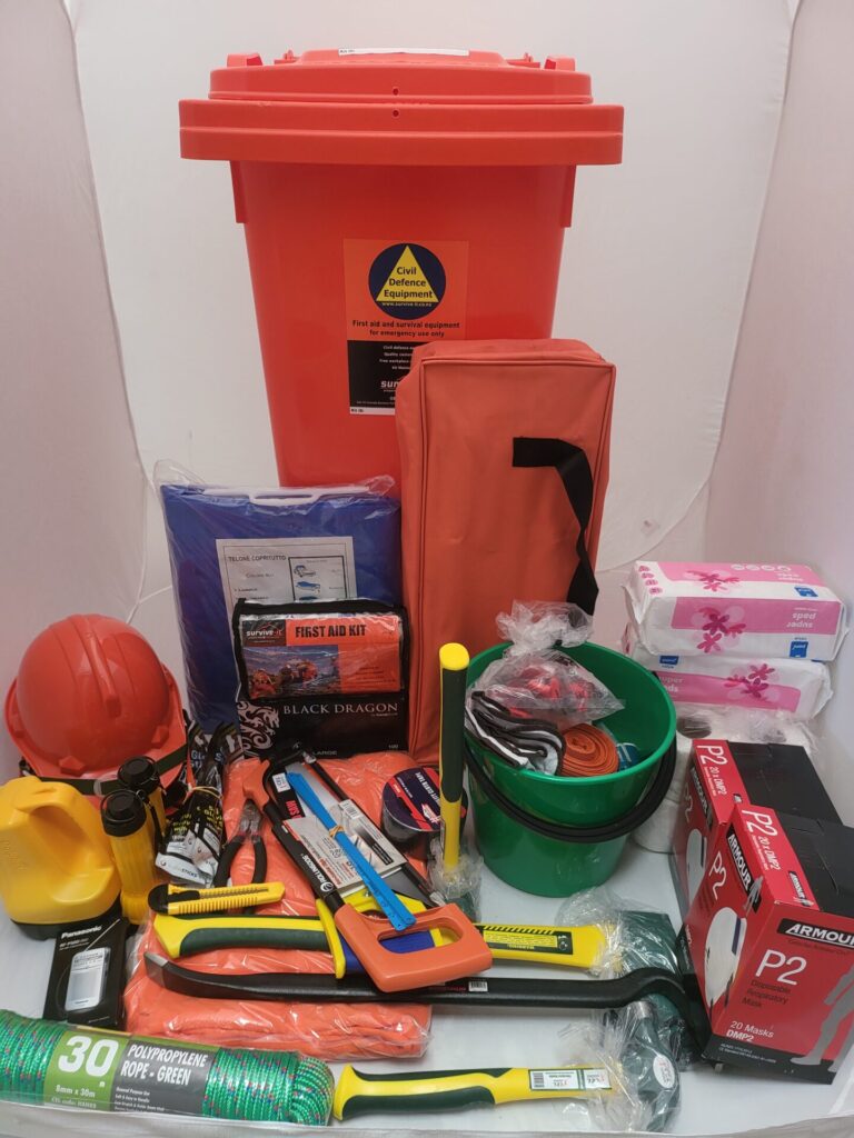 This Civil Defence Wheelie kit is ideal for offices, schools, or any situation requiring essential emergency equipment.